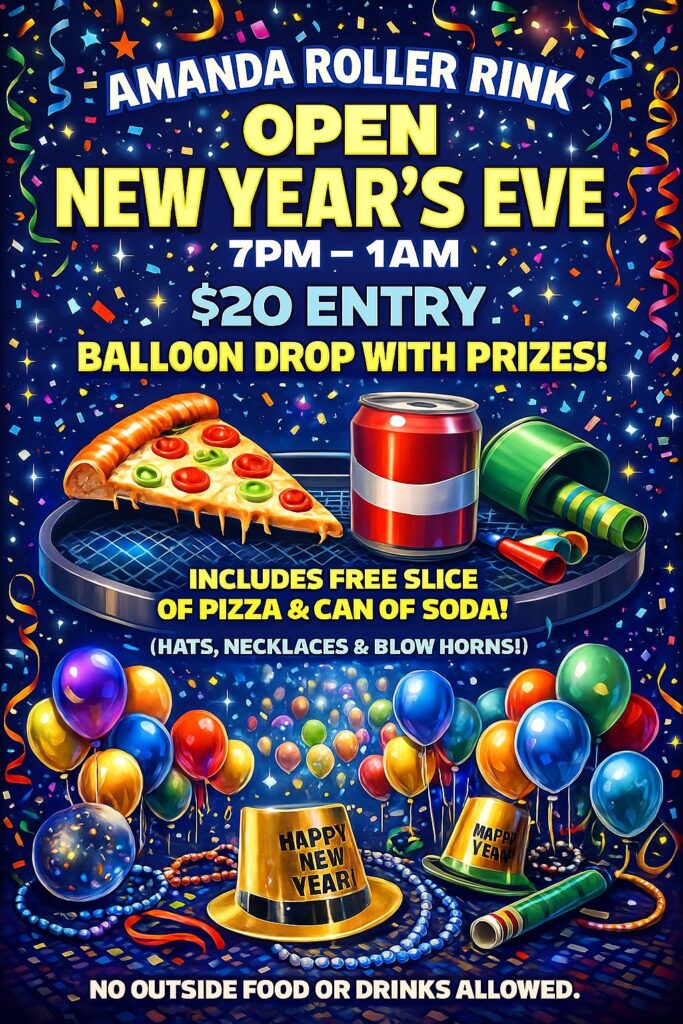 Public open skating is available on Friday and Saturday from 7pm-11pm. Concession food and retro video games are available. DJ will play different games are take music requests throughout the night. $5.00 admission and $2.00 skate rental.